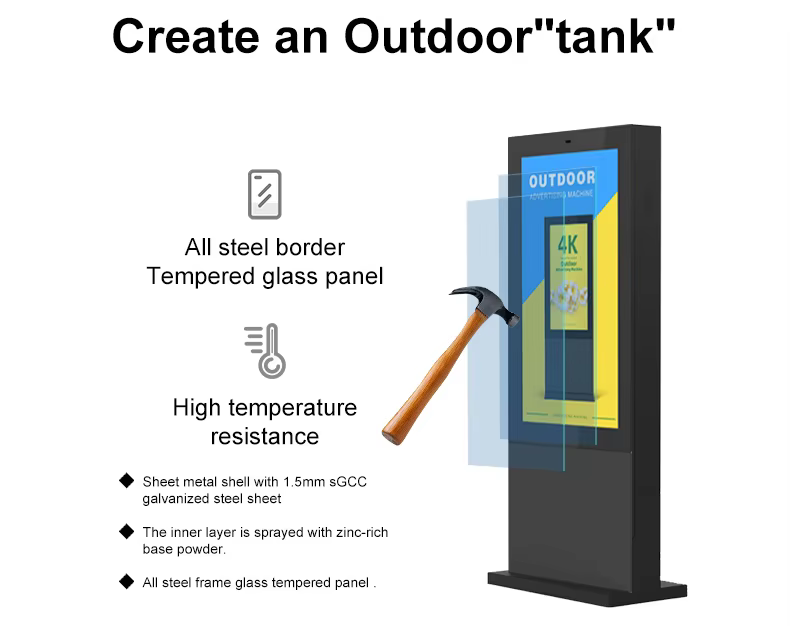 Naast deze 49 55 65 inch Outdoor Ag AR Glass 4K dubbelzijdige digitale bewegwijzering met 4G, is WE Topadkiosks een LCD-productenfabrikanten met sterke onderzoeksmogelijkheden, het bedrijf is sinds zijn oprichting toegewijd aan het leveren van hoogwaardige hardware en software van hoge kwaliteit, een win-win coöperaties voor alle klanten, momenteel een van de toonaangevende professionele multimedia-terminale fabrikanten in China. HTDSD richt zich voornamelijk op advertentiemachines, onderzoeksmachines van touchscreen, elektronische whiteboards, multimedia -netwerkinformatie -release -systemen en andere terminal display -producten.
