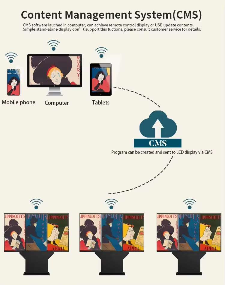 Voor voetgangers en voertuigen onderweg, 75 inch grote 4K-advertentiebromotie en informatiedisplay voorgesteld. Tegelijkertijd kan de dagelijkse kaart- en informatiequery bieden